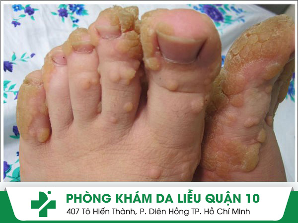 Mụn cứng ở tay/chân: Gai sần, xám, đau nhức khi chạm.