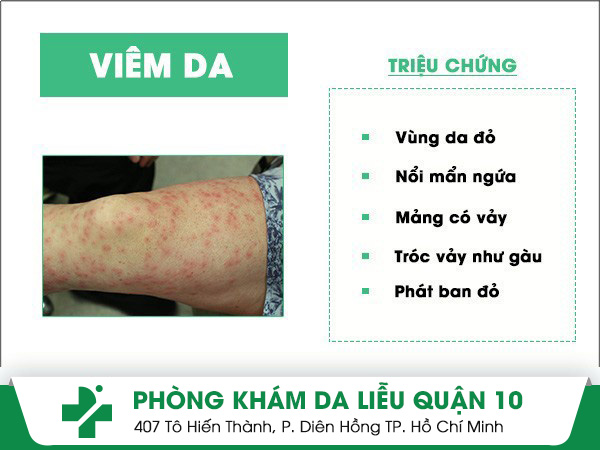 ♦ Viêm da: Nhóm bệnh viêm da là nhóm bệnh phổ biến hiện nay, trong đó có nhiều hình thái khác nhau bao gồm viêm da dị ứng, viêm da cơ địa, viêm da tiếp xúc, viêm da tiết bã,… Phần lớn các bệnh viêm da đều có biểu hiện bóng nước, rỉ dịch, bề mặt hình thành một lớp mài và tróc ra. Đặc biệt viêm da có thể gây ngứa ngáy liên tục và dữ dội, đặc biệt khi bị va chạm hoặc cọ xát.