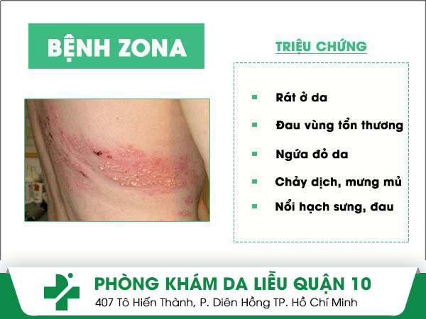 ♦ Bệnh zona: Bệnh do sự hoạt động trỏ lại của một loại virus gây nên bệnh thủy đậu đang ngủ yên trong cơ thể. Thông thường người từng bị thủy đậu có khả năng mắc phải bệnh này rất cao. Virus xâm nhập theo dây thần kinh để đến bờ mặt da gây hại.