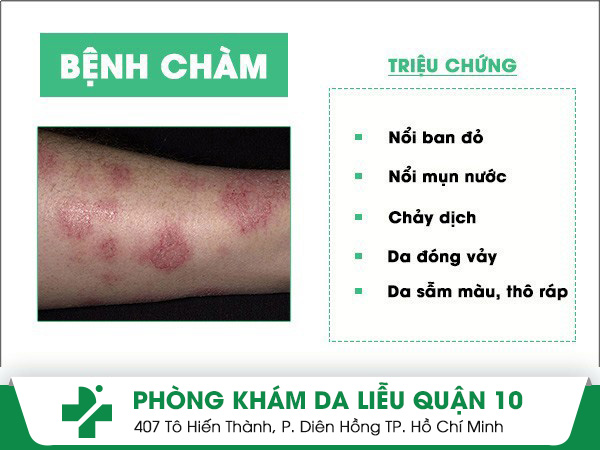 ♦ Bệnh chàm: Được biết đến là bệnh có nhiều hình thái bao gồm các bệnh như: chàm khô, chàm tiếp xúc, chàm dị ứng, chàm tổ đỉa, chàm da thần kinh, chàm tiết bã,… Triệu chứng đặc trưng là khô da, ngứa da, tấy đỏ, sưng và đau. Đặc biệt là cảm giác muốn gãi, nhưng càng gãi thì bệnh lại càng nặng hơn.