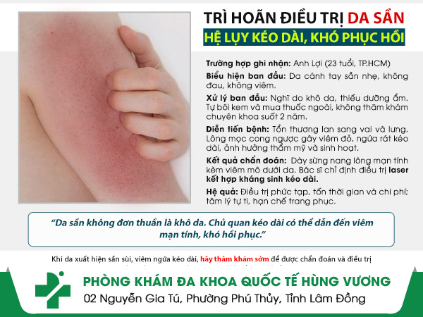 Chỉ từ những mảng da sần tưởng chừng vô hại, sự chủ quan kéo dài đã âm thầm bào mòn sự tự tin của anh Lợi suốt nhiều năm. Đến khi tìm gặp bác sĩ, tổn thương không còn đơn giản như ban đầu, để lại nỗi tiếc nuối mang tên “giá như đi khám sớm hơn”.