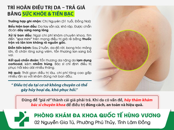 Chỉ vì tiếc một khoản chi phí nhỏ ban đầu, bạn Nguyên đã đánh đổi bằng làn da tổn thương nặng và quá trình điều trị kéo dài. Câu chuyện này là lời cảnh tỉnh cho những ai tin vào “giá rẻ” mà bỏ qua sự an toàn của chính mình.