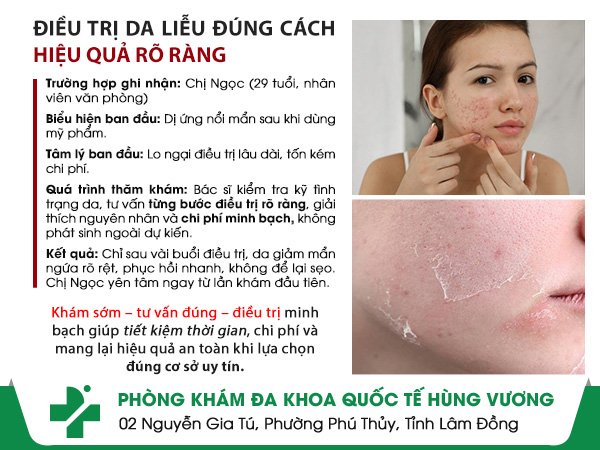 Khi da bất ngờ nổi mẩn, nhiều người lập tức lo lắng sẽ phải điều trị lâu dài, tốn kém và để lại sẹo. Nhưng trên thực tế, nếu được thăm khám sớm và tư vấn đúng hướng, không ít trường hợp có thể cải thiện nhanh chóng, nhẹ nhàng hơn rất nhiều. Câu chuyện của chị Ngọc là một ví dụ điển hình.