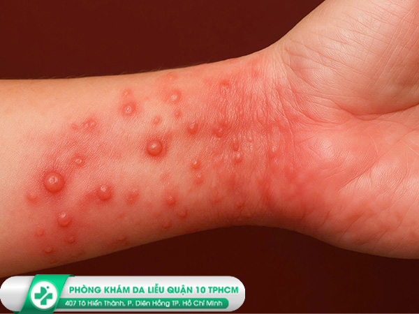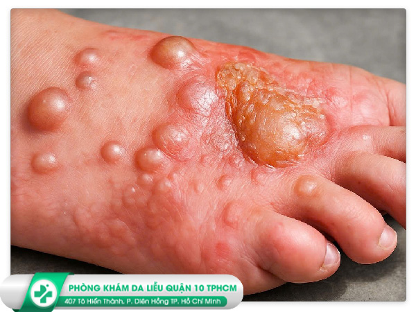 Xuất hiện mụn nước, bóng nước nhỏ.