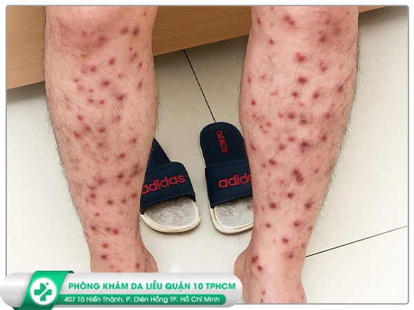 Ban đầu chỉ bị ngứa nhẹ ở kẽ tay, nghĩ là dị ứng nên mua thuốc mỡ vài chục ngàn về bôi. Thấy đỡ được vài hôm rồi ngứa lại, nhưng vì tiếc tiền đi khám, anh cứ để vậy hơn 1 tháng. Đến khi ghẻ lan xuống cả chân, vùng kín – ngứa rát, mất ngủ, da trầy xước và lở loét – anh mới đến phòng khám. Bác sĩ chẩn đoán ghẻ bội nhiễm, phải điều trị kết hợp thuốc, chiếu đèn, sát khuẩn nhiều lần, tốn gấp 5–6 lần so với ban đầu.