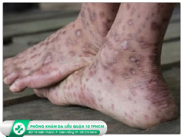 Mụn nước nhỏ, đường hang trắng xám ngoằn ngoèo