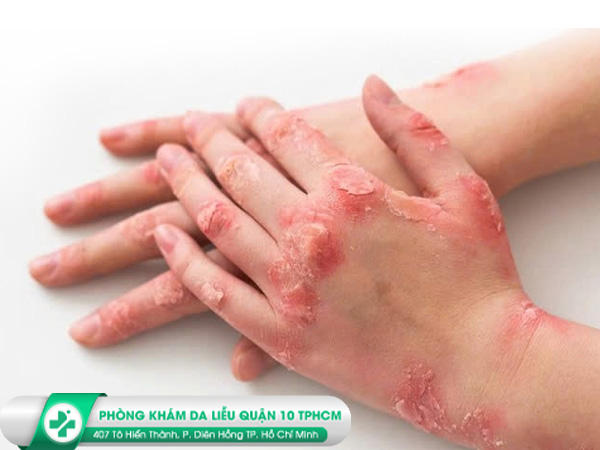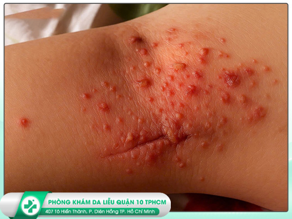 Bị ngứa ở tay, sau lan ra bụng – đùi. Tự ý bôi thuốc ngoài, nhưng mụn nước ngày càng nhiều, vỡ chảy dịch, đóng vảy vàng. Ngứa đến mất ngủ, da chà xát rớm máu. Khi đến khám tại Phòng Khám Da Liễu Quận 10, chị được chẩn đoán ghẻ xốn mức độ nặng, có nhiễm trùng da và nguy cơ viêm cầu thận.