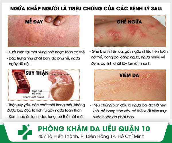 - Bệnh gan, thận: Gây ngứa toàn thân do độc tố tích tụ trong máu.