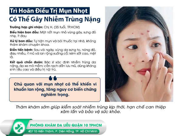 Không phải mụn nhọt nào cũng “tự xẹp” như nhiều người vẫn nghĩ. Chỉ một quyết định tự ý dùng thuốc sai cách, một lần chần chừ đi khám cũng có thể khiến một tổn thương nhỏ trở thành biến chứng nặng, để lại hậu quả khó lường. Trường hợp sau đây là một ví dụ điển hình.