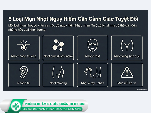 Để giúp bạn nhận biết chính xác và tránh biến chứng, dưới đây là 8 loại mụn nhọt thường gặp cùng những dấu hiệu cảnh báo quan trọng cần đặc biệt lưu ý.