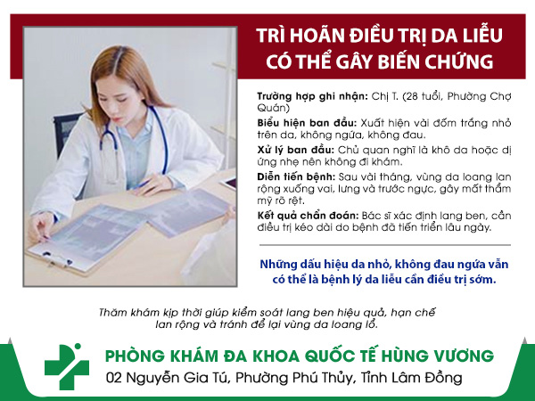 Lang ben nếu được phát hiện và điều trị sớm sẽ hồi phục nhanh, hạn chế lan rộng và tiết kiệm chi phí. Ngược lại, việc chủ quan hoặc tự ý điều trị có thể khiến bệnh tái phát nhiều lần, để lại tổn thương da khó phục hồi.