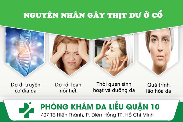 Theo các bác sĩ Phòng Khám Da Liễu Quận 10 thì mụn thịt dư ở cổ có thể xuất hiện ở nhiều độ tuổi khác nhau, và nguyên nhân gây ra cũng khá đa dạng, như là:
