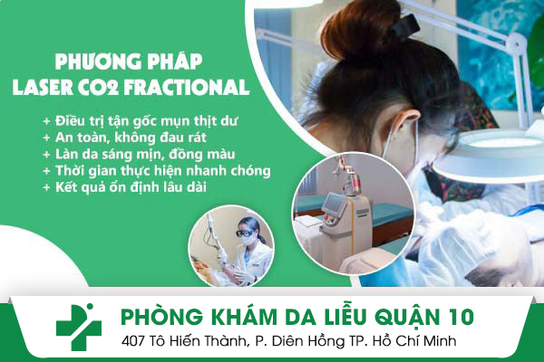 Tại TPHCM, bạn có thể đến ngay Phòng Khám Da Liễu Quận 10 (tại số 407 Tô Hiến Thành, P.Diên Hồng, TP.HCM) – cơ sở chuyên khoa da liễu, chữa trị mụn thịt bằng các công nghệ tiên tiến, đánh bay các nốt mụn thịt dư một các hiệu quả, an toàn chỉ sau 1 lần điều trị.