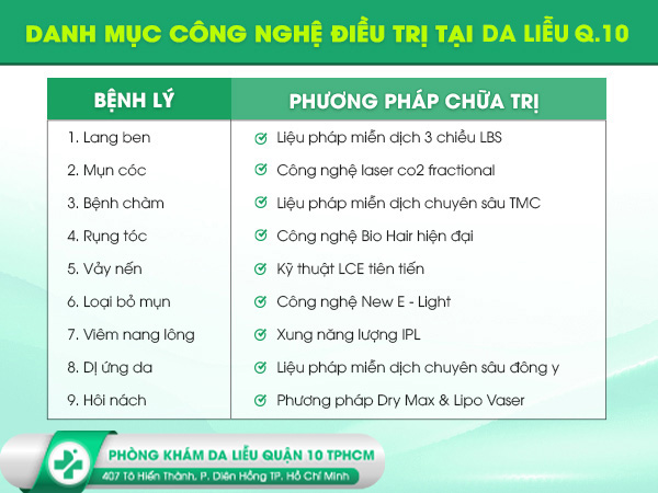 Phòng Khám Da Liễu Quận 10 điều trị các vấn đề bệnh ngoài da.
